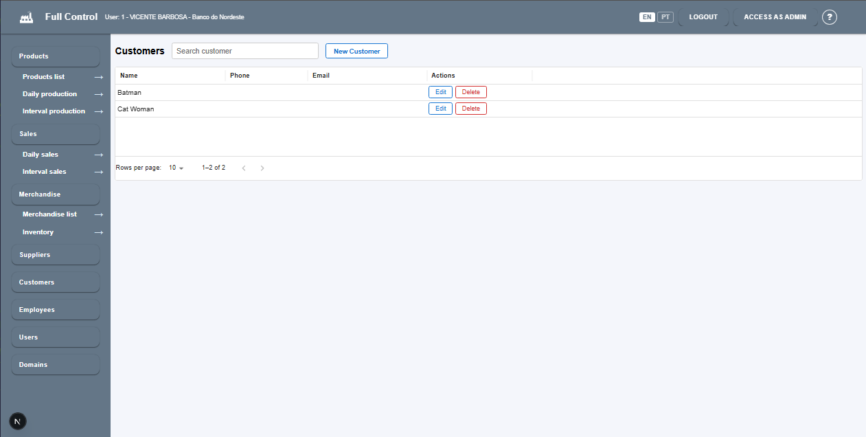 Customer registration has no integration with any other Full Control module. It was maintained because there was the possibility of integration in the sales module. It may still have it in the future.