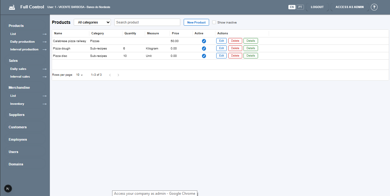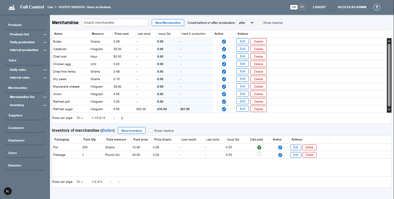 In practice, you will know how much it costs to manufacture each product, which merchandise items are used and in what quantity, what the labor cost is, and which merchandise items — and how much of them — left and should have left stock. Of course, you will have an initial effort to register merchandise, products, and their compositions, but I assure you that the effort will be worth it.