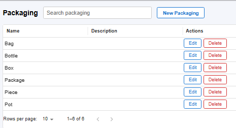 - Packaging: select packaging type of inventory item. Optional, but helps identify merchandise.